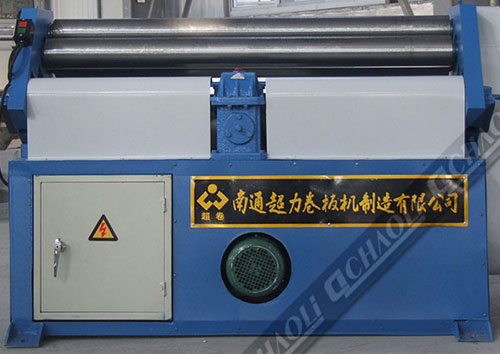 該機結構型式為三輥非對稱式,下輥為主傳動,并做垂直升降運動,以便夾緊板材。通過下輥齒輪與上輥齒輪嚙合,同時作為主傳動,側輥作傾升降運動。具有預彎、卷圓多重功能,結構緊湊操作維修方便。