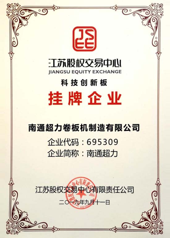 - 南通超力卷板機(jī)制造公司承擔(dān)國(guó)家火炬計(jì)劃