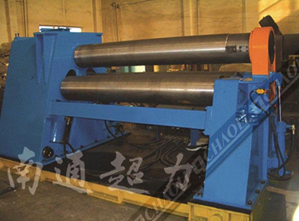 W11H三輥弧線下調式卷板機是引進瑞典先進技術而生產的。能將金屬板料一次上料,不需調頭即可完成板料端部預彎和卷制成形,機器三個工作輥均為主驅動輥。升降位移計算機控制,自動調平,屏幕顯示翻轉軸承體(倒頭)裝有傾倒油缸。